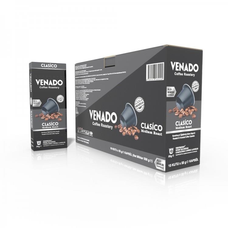 Venado Clasico Kapsülleri Güney Amerika, Orta Amerika ve Afrika’dan %100 ince harmanlanmış Arabica çekirdeklerinden oluşur.